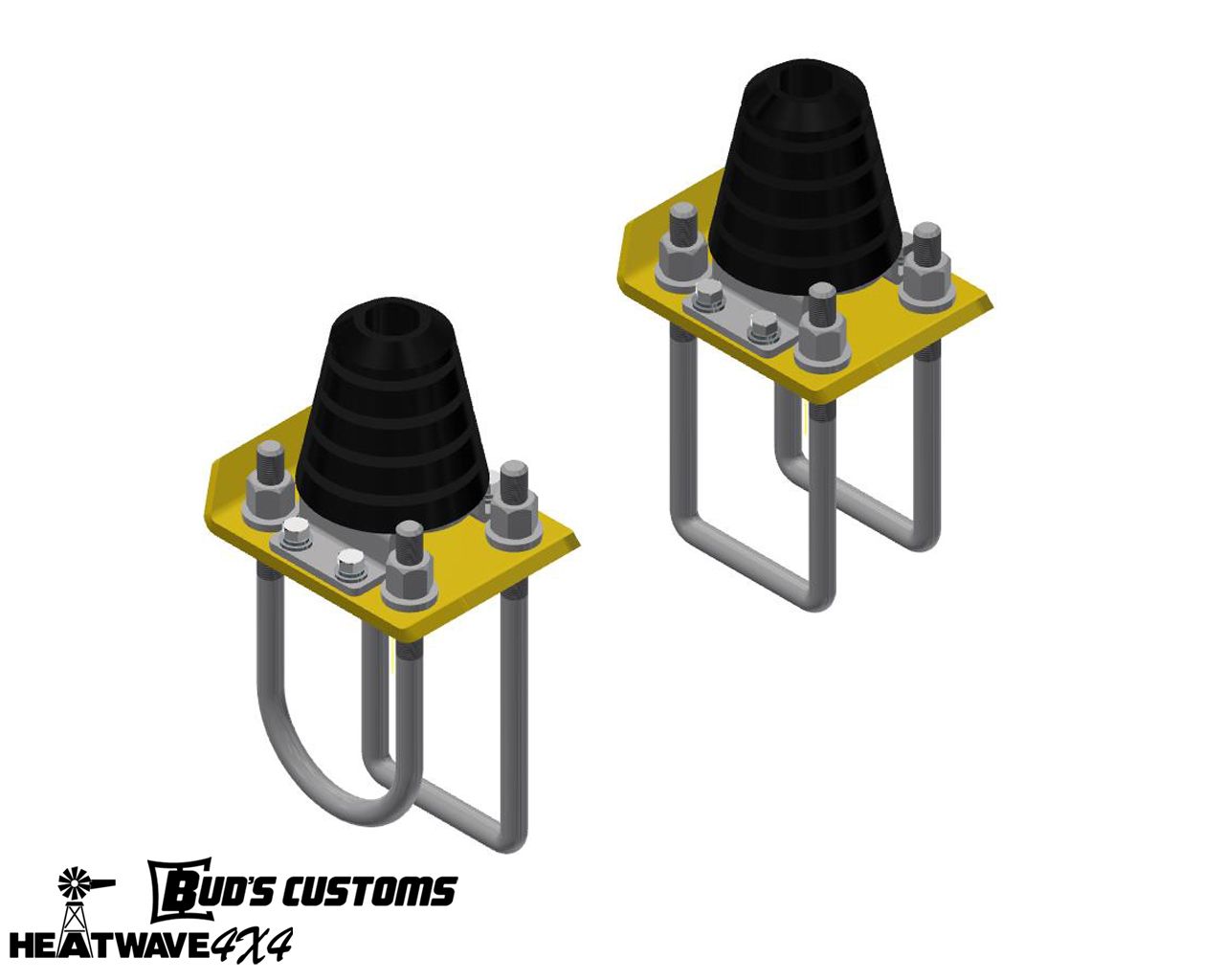 This kit could help fix those problems. We supply a folded plate to raise the bump stop above the U bolt nuts to allow a progressive style bump stop to be fitted. These can be retro fitted as we supply a drill template so you can drill and tap your own holes in your exsiting u bolt flip kit plates.