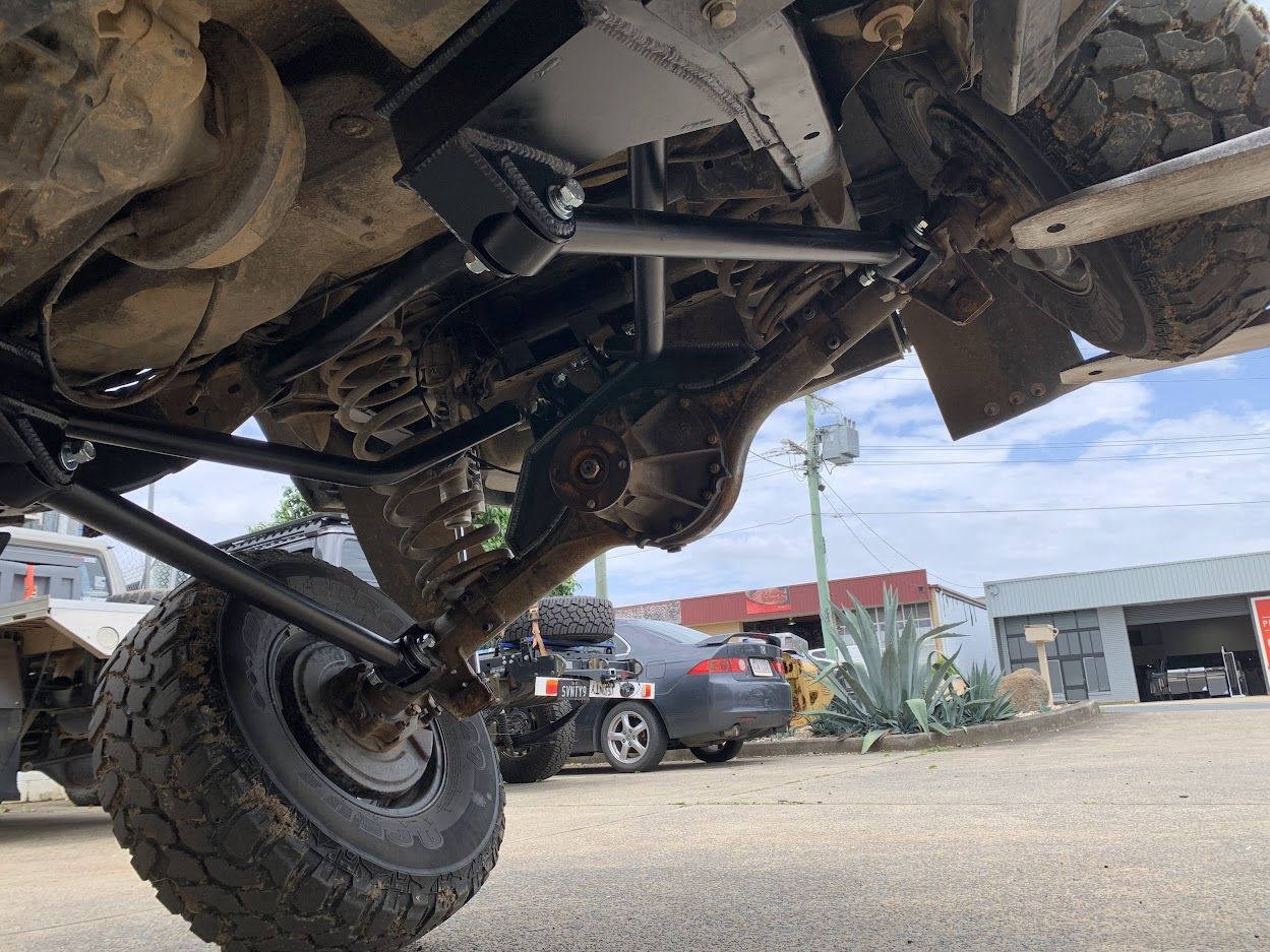 New design 4 link kit suit rear of SWB patrols. Features most triangulation of any patrol kit offered. Kit locates off of lower factory lower control arm mounts really making installation easier.